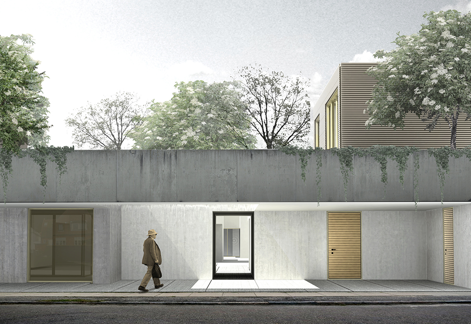 To facilitate a transparent and lively street-environment the individual gardens are elevated, creating social spaces and passages in the shared garden below, inviting the public to pass through.